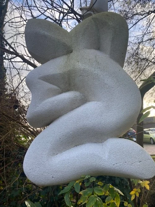 Deze tuinbeelden van gasbeton hebben een witte waterafstotende coating. Wit geeft het meeste contrast; andere kleuren zijn ook mogelijk. De beelden kunnen op een betonijzeren statief (eventueel met onderplaat) geplaatst worden. Omdat gasbeton licht van gewicht is, zijn de beelden ook geschikt om opgehangen te worden.
